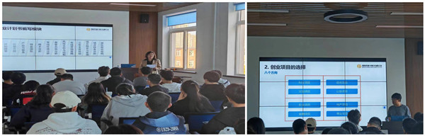 刘宇峰根据自身经历为同学们分享了创新思维和方法,并就创业项目的选择和组建进行了详细分析,最后还通过列举一些商业模式,加深参会学生对创新创业的理解。