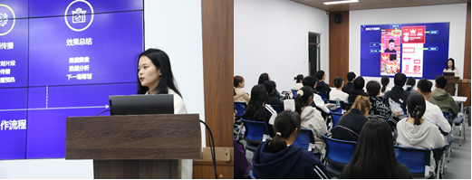黄朦朦就当前直播行业现状、自媒体行业发展的问题进行深入讲解,通过自身的实习工作经历以及行业发展需求,使学生更全面的了解应该如何开展直播带货、怎样将创新创业与直播带货相连接,并在此基础上展望直播行业前景,对一些创新创业项目进行直播规划。本次讲座还设置了互动问答环节,黄朦朦与学生就直播行业相关话题进行深入探讨,帮助同学们拓展思路、开阔视野、激发对直播行业的热情。