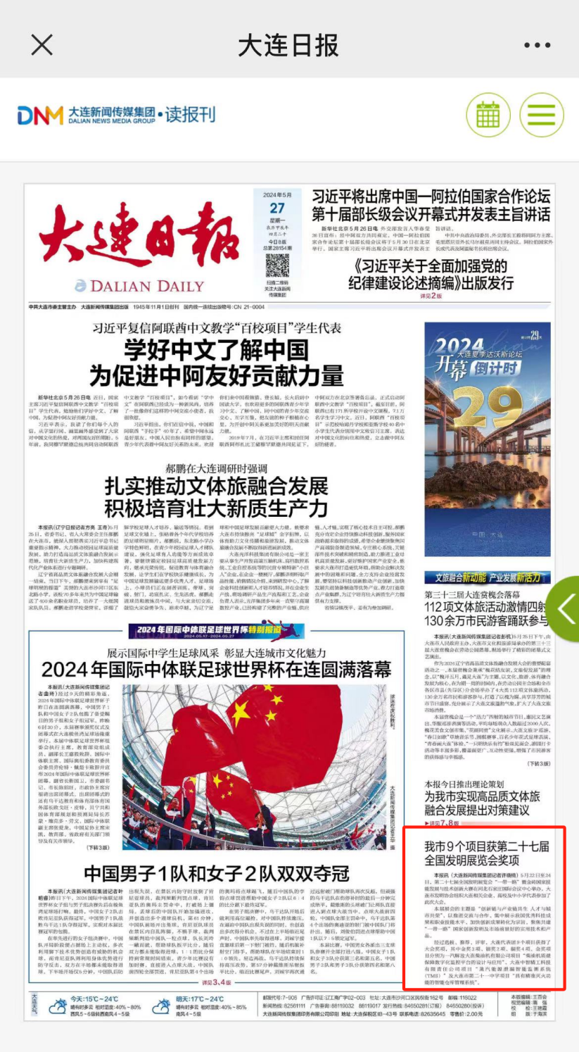 另外,《大连日报》头版头条报道了我市在全国发明展览会的获奖情况。