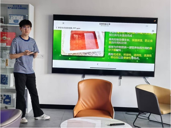 国际创新大赛国家级金奖项目分享题目是《新型生态液体地膜》,分享同学详细介绍了项目的创新点:该液体地膜采用天然可降解材料,通过特殊工艺制成,在具备传统地膜保温、保湿、保墒等功能的同时,能够在一定时间内自然分解,不会对土壤造成污染。在应用前景方面,该项目不仅适用于农业种植领域,还可拓展到生态修复等其他领域,市场潜力巨大。整个分享过程让在场师生对项目有了更直观的认识。现场师生积极提问,与分享人展开深入交流,碰撞出创新的火花。