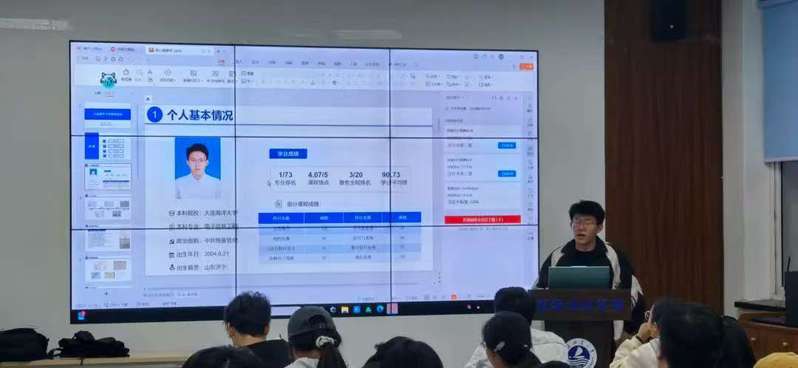 信息工程学院电子信息工程2022级1班张以通分享自己在创新创业中的学习工作经验。他介绍了自己睿抗机器人开发者大赛国家二等奖,中国大学生计算机设计大赛国家三等奖,全国大学生数学竞赛国家三等奖,挑战杯课外学术科技竞赛省一等奖,辽宁省大学生数学建模大赛省一等奖,2024辽宁省本科大学生计算机设计大赛三等奖,2025全国大学生创新创业训练计划年会展示等30余项竞赛成果,并详细分享了如何选择竞赛项目、了解竞赛的规则和参加竞赛的技巧。